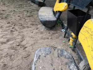 Отдельная боль - детская площадка. Первое, она сильно износилась. Куски фанеры отвалились на горках, торчат занозы. В беседке с весны сломана вторая лавка, а теперь и пол. Анна Кац писала про подвязанные веревкой качели, хорошо что все-таки запаяли. Песочница разрослась до лавок во все стороны, песок с прошлого года не меняли и не возвращали на место. Лавочки рядом с песочницей не чистят, песок с них убирают только сознательные родители, несознательные - садятся на лавку с ногами.