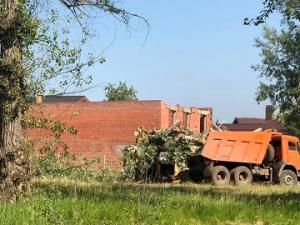 Свое сообщение она проиллюстрировала фото- и видеоматериалами, запечатлевшими, как неподалеку от строящихся коттеджей свежеспиленные деревья грузятся на самосвал и вывозятся.