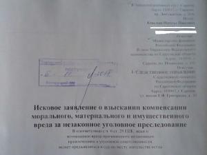По словам Ковалевой, сегодня, 6 ноября, она обратилась с соответствующим иском в Заводской районный суд Саратова. Саратовчанка также поведала о расследовании других уголовных дел, находящихся в производстве СУ СКР, по которым ее также намеревались привлечь к уголовной ответственности (речь может идти о клевете и оскорблении судьи).