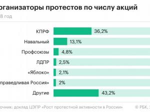 Почти половина (46,5 процента) протестных акций в 2018 году были связаны с пенсионной реформой. Наиболее активна в мобилизации граждан была КПРФ; на втором месте по числу проведенных мероприятий оказались сторонники Алексея Навального.