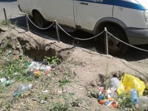 По словам граждан, стражи порядка устроили помойку на противоположной стороне от своего места работа. Они скидывают в яму, разрытую работниками «Т Плюс», пачки от сигарет, бычки, контейнеры для еды, консервные банки и бутылки от минералки.