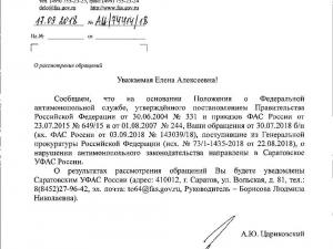 «Самое смешное, что они (сотрудники Саратовского УФАС - ред.) ссылаются на отсутствие подписи и почтового адреса, тогда как я отправляла обращение через официальную интернет-приемную на сайте ФАС России, где не предусмотрен ввод адреса (в случае ответа в электронном виде) и, разумеется, нет подписи - обращение-то электронное», - недоумевает собеседница нашего издания.