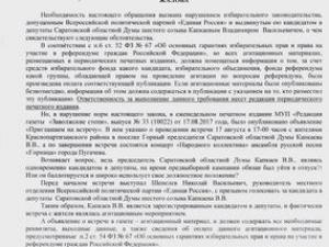 Первый секретарь Саратовского обкома КПРФ Ольга Алимова направила обращения в адрес председателя ЦИК Эллы Памфиловой и главы регионального избиркома Павла Точилкина. Лидер местных коммунистов просит проверить законность агитационной кампании спикера облдумы Владимира Капкаева, баллотирующегося в регпарламент в качестве «списочника» по Пугачевскому округу № 20.